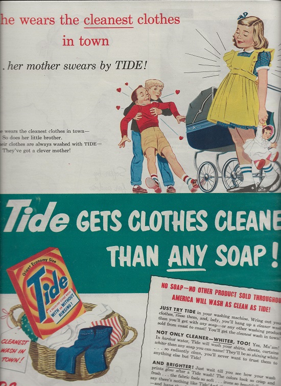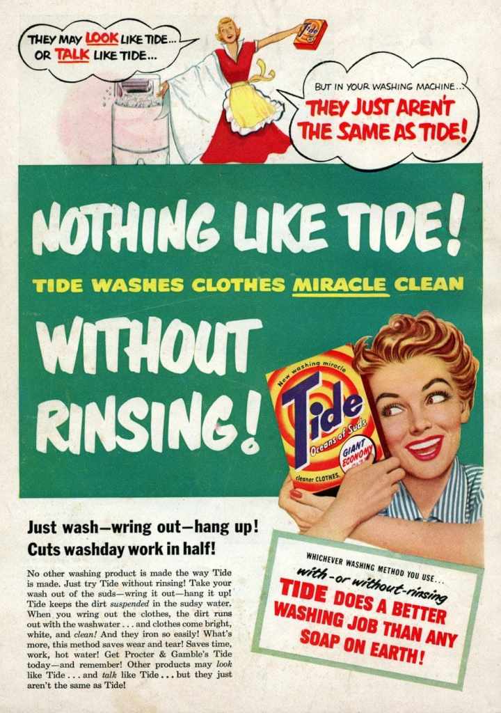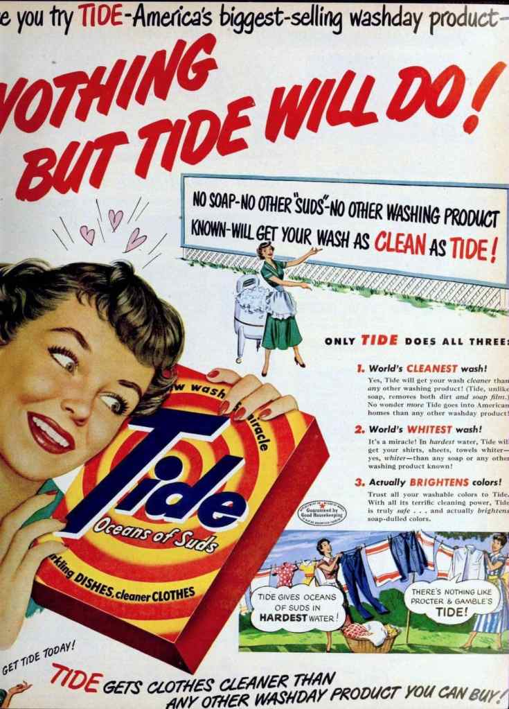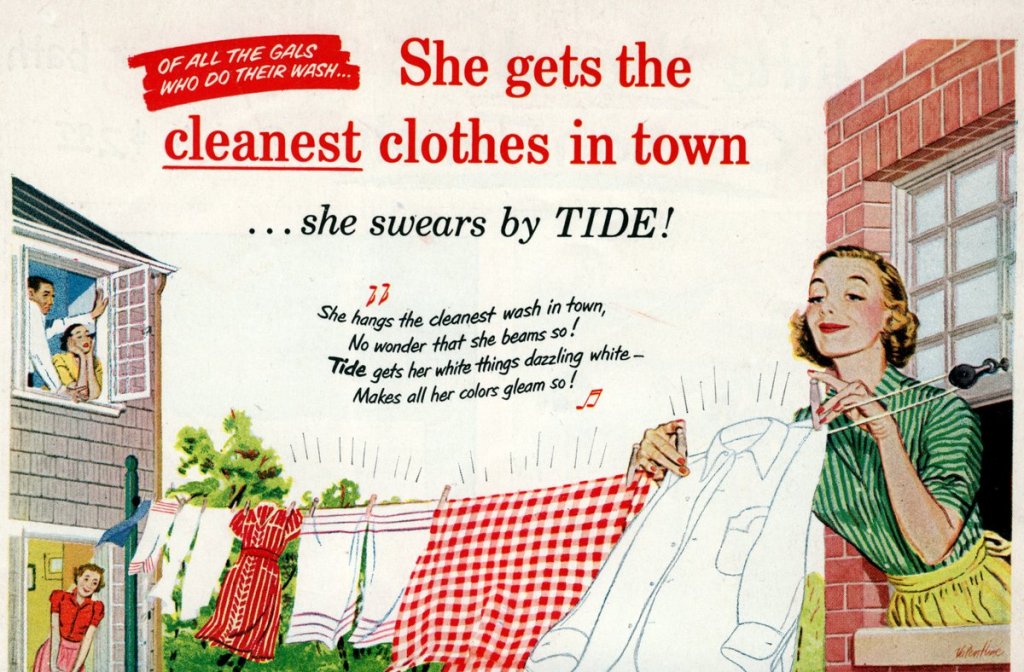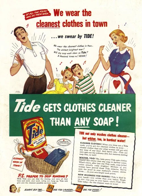 Let’s take a look at a 50s detergent advertising.