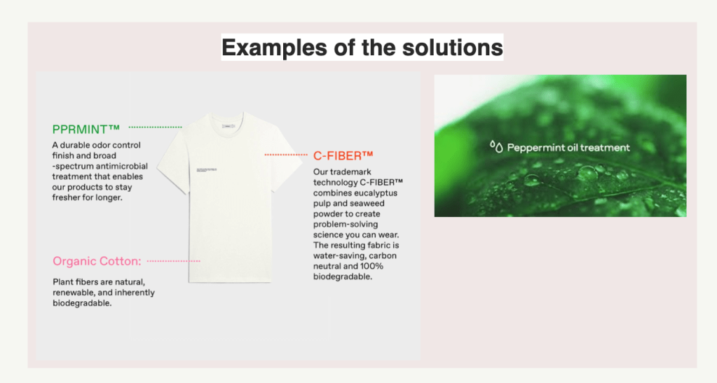 Sustainable brand from the UK not only grows one tree for each item purchased, but also uses peppermint in their fabrics so that things can last longer. They tell customers how bad it is to wash things often. Also, now they write on their clothes that they can be washed less often.