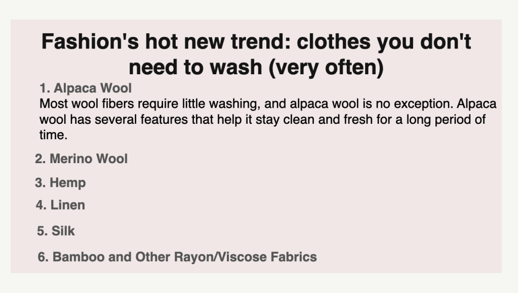 Decades of marketing from the cleaning industry has conditioned many people to throw their clothes in the laundry after one day’s wear, even though this is rarely necessary. So one of the biggest challenges for brands pitching clothes that don’t need to be washed frequently is to convince people that they will not be gross, smelly, or dirty if they aren’t constantly doing loads of laundry.