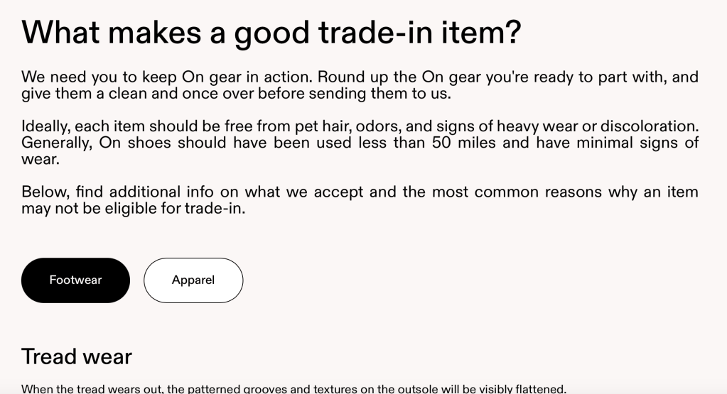 The ON program is an interesting idea, but it seems to need more work. However, they have clear guidelines on what is acceptable and what is not. The website is user-friendly and well-organized. Unfortunately buying used seems a bit not reasonable here, as you can find some gear cheaper at sale section. Prices should definitely match those in the sale section. I couldn’t find information on what they do with the money they make from reselling items, though. Some information from website: “For each eligible item, you’ll receive a gift card to spend towards your next purchase on the Onward platform or at on-running.com. Your gear will then be listed for sale on Onward, ready to find its new home. Anything that isn’t eligible will be donated or recycled.”