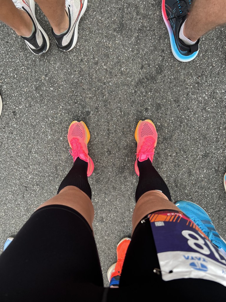 За пару недель до марафона я делала обзор на кроссовки и решила протестировать их на быстрых 5 км. Я пробежала 5 км быстро по району вечером (это была моя вторая пробежка за день), пробежала заметно меньше чем за 21 минуту, и через день повторила это, пробежав 5 км за 20 минут. Я поняла, что в целом нахожусь в хорошей форме и на марафоне надо попробовать бежать не только для удовольствия, но и добавить скорости. Но обо все по порядку.