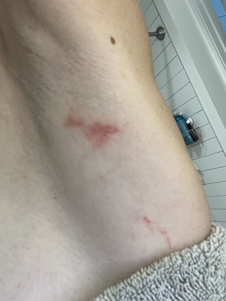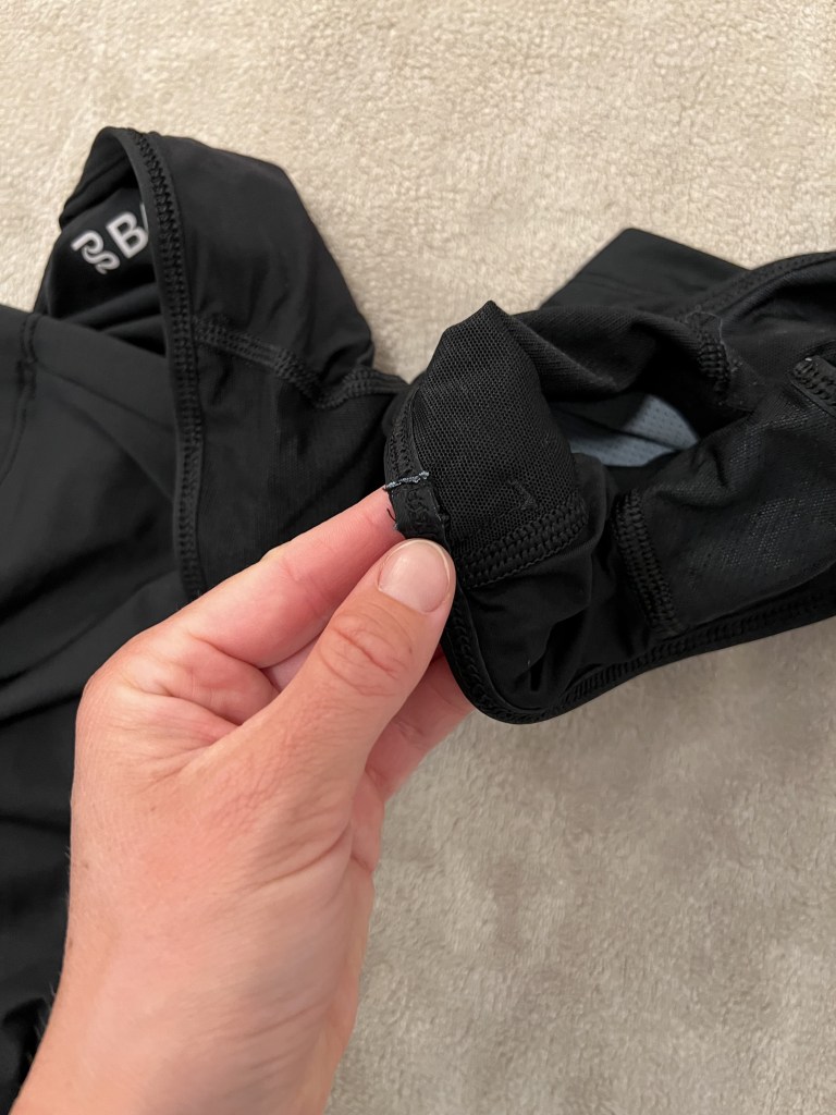 Тут я столкнулась с самым большим дискомфортом в своей жизни. Оказалось, что топ бандит немного изменил свою новую модель по сравнению со старой. В районе подмышки появился шов или, вернее, выступ от наслоения швов, как вы видите, ранее такого не было. Этот шов разрезал мою подмышку очень глубоко. Я уже выразила им свои мысли по этому поводу и будем надеяться, что они это исправят. В остальном это идеальный топ, так как он не вызвал натертостей больше нигде, где обычно бывают беспощадные топы. Избавление от этого “бампа” сделает его лучшим топом для гонок.