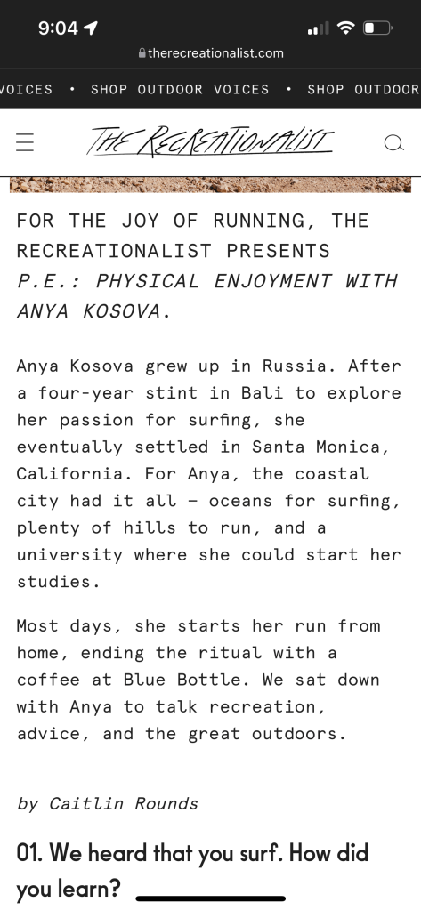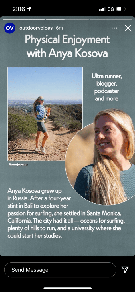 Today, I write about active living, coach runners, and take on my own adventures — from ultramarathons in the mountains to surfing and skiing. I also work as a producer and on-camera talent for active lifestyle brands, creating campaigns and content that inspire people to move.